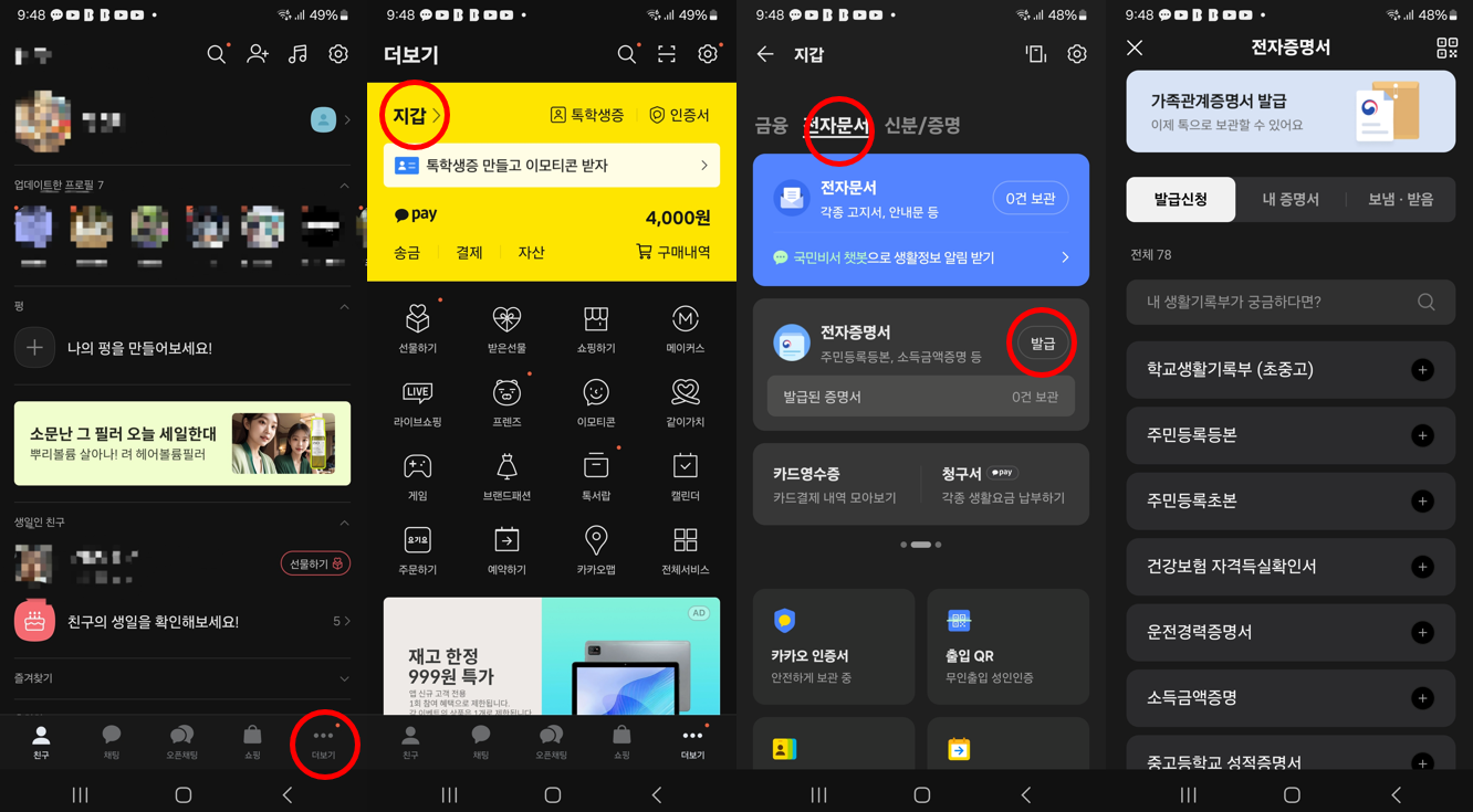 3) [지갑]-[전자문서]-[전자증명서]-[발급]