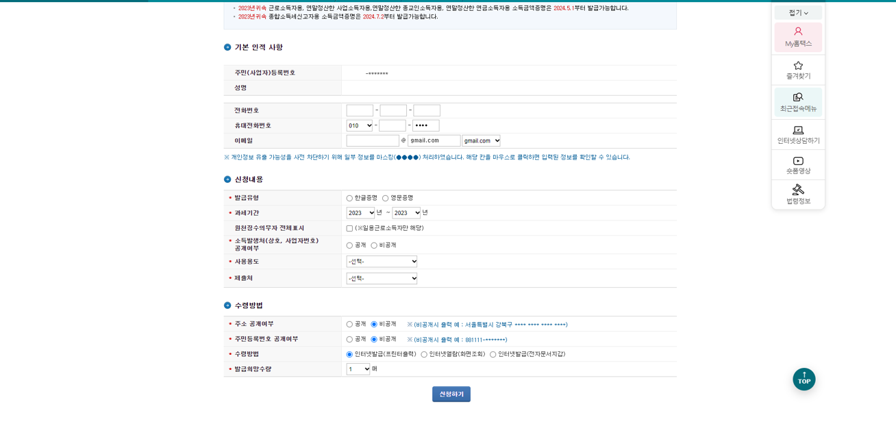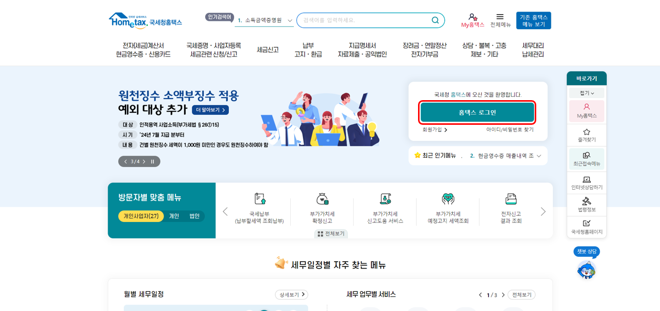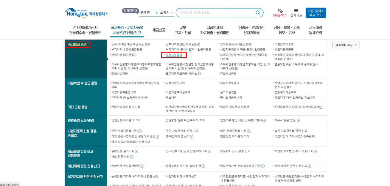 인터넷발급 - 홈택스